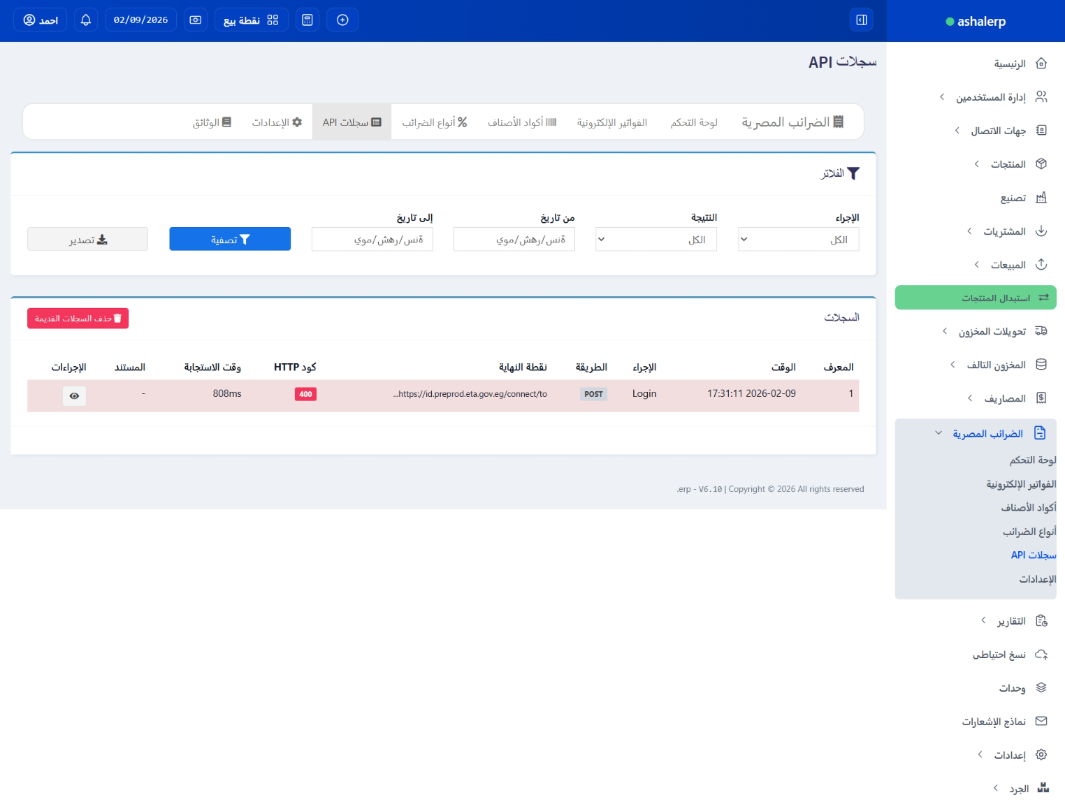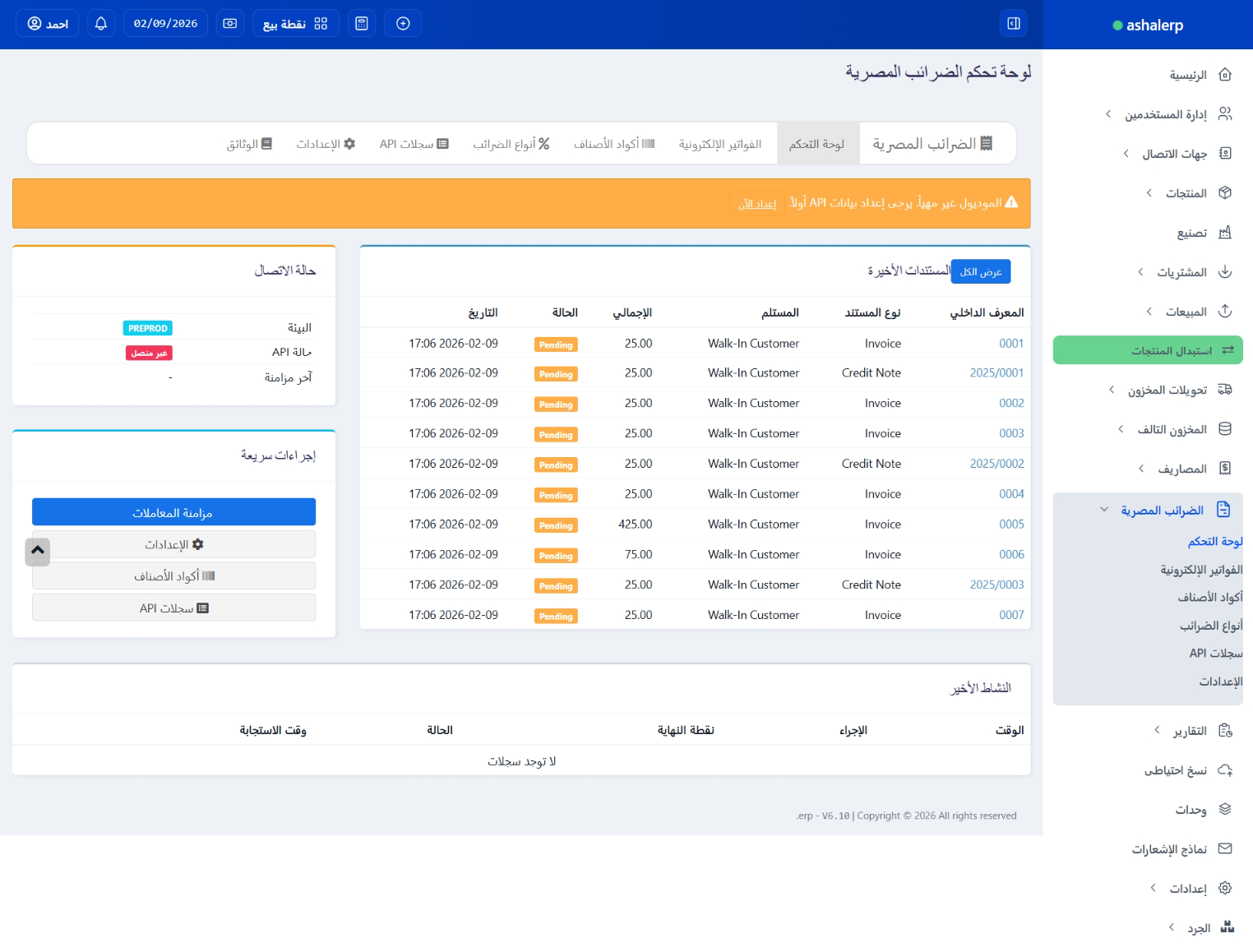 • سجل أحداث دقيق (Logs): نظام مراقبة كامل يسجل كافة عمليات الربط والاستجابات من سيرفرات مصلحة الضرائب لسهولة تتبع أي خطأ ومعالجته فوراً.