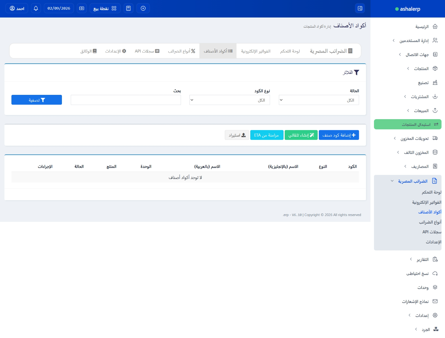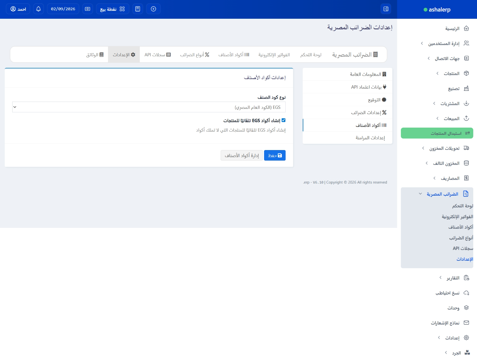 • إدارة ذكية للأكواد (GS1 & EGS): استيراد وتزامن تلقائي لأكواد السلع والخدمات مع قاعدة بيانات مصلحة الضرائب، مع إمكانية توليد أكواد EGS لمنتجاتك بضغطة زر.