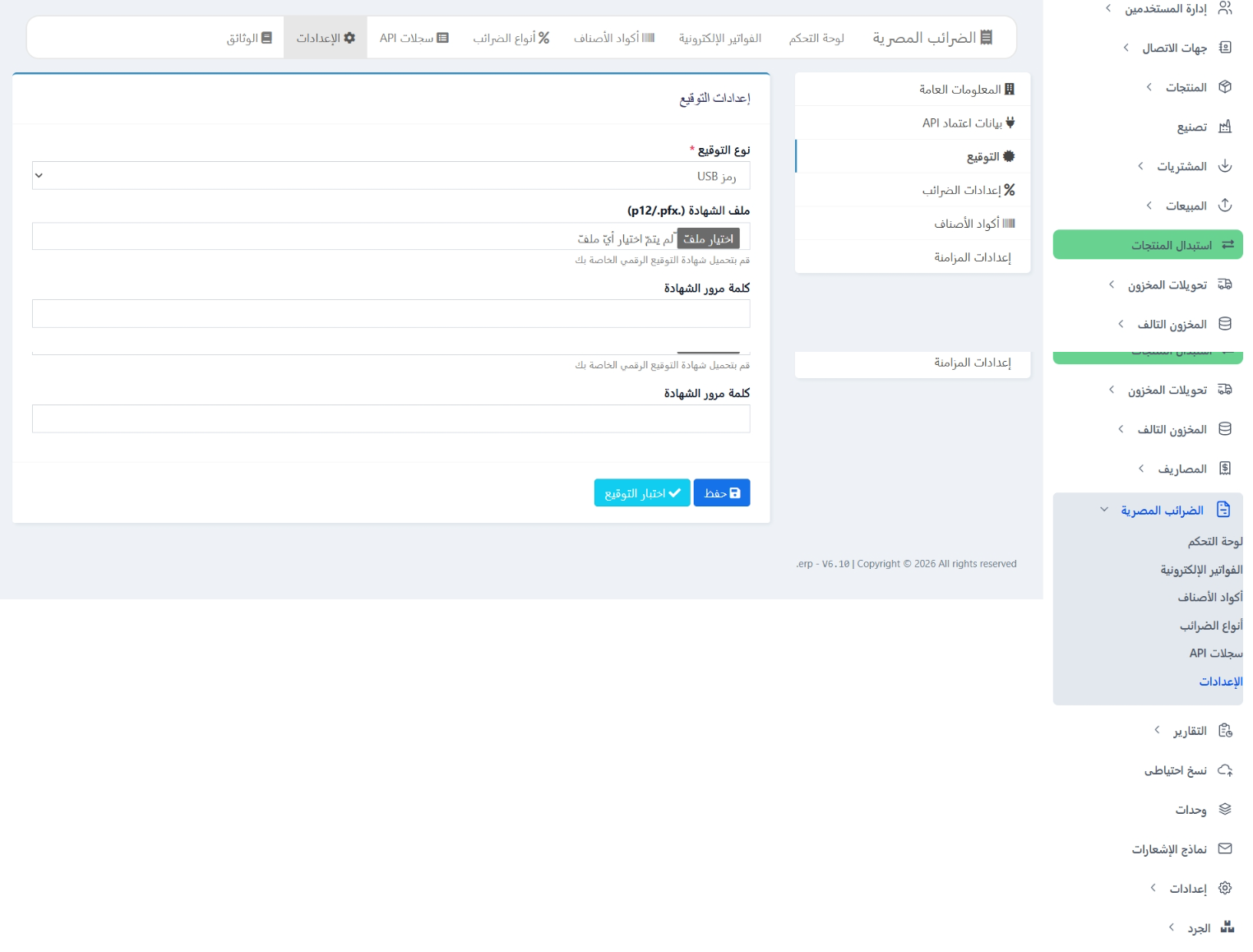 • التوقيع الإلكتروني (USB Token): دعم كامل لأجهزة التوقيع الإلكتروني لضمان أمان وقانونية كل فاتورة تخرج من نظامك.