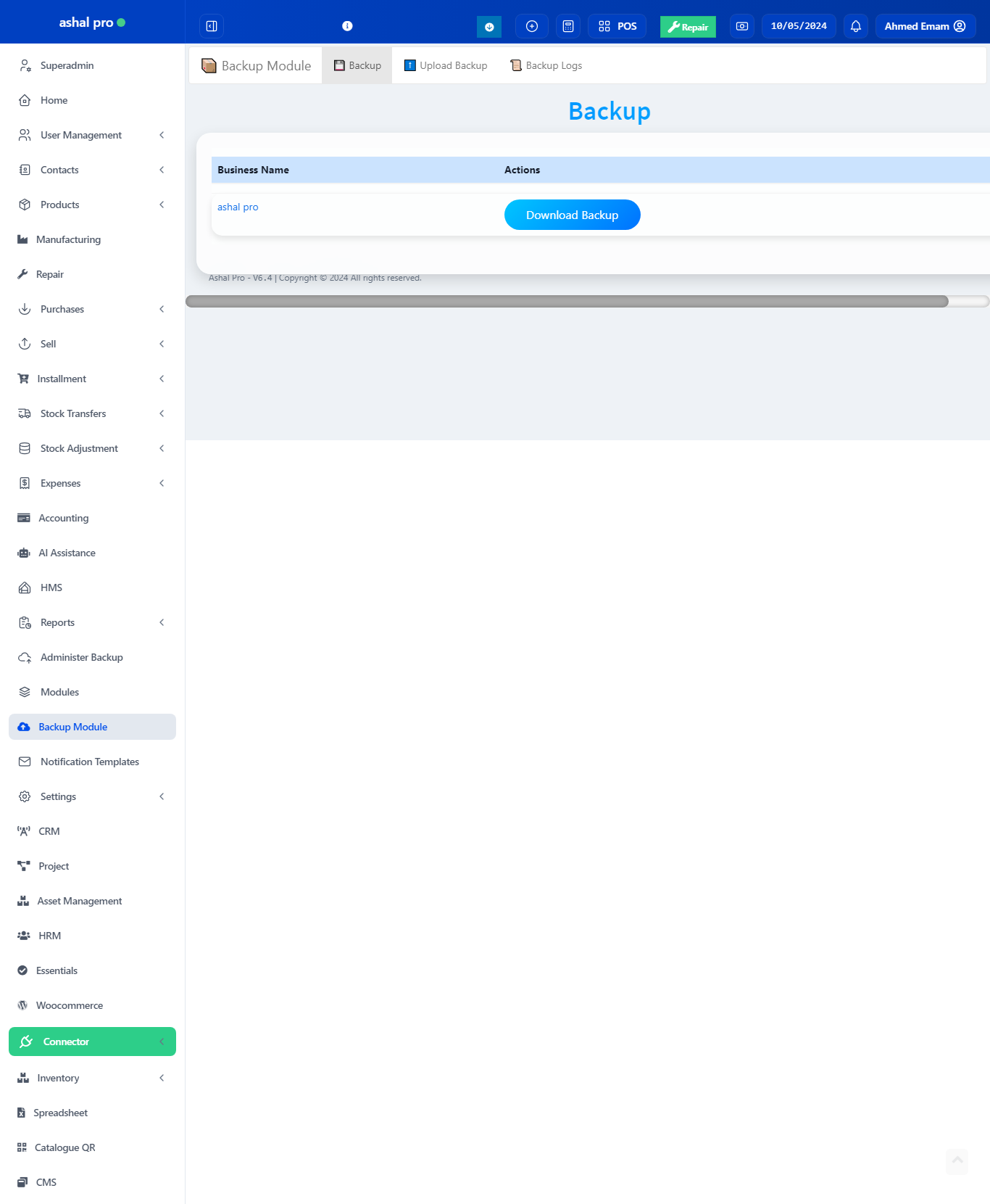 • Versatile Module Compatibility: Backup data from any modules integrated into your UltimatePOS system, ensuring comprehensive coverage for all business areas. Modules include: