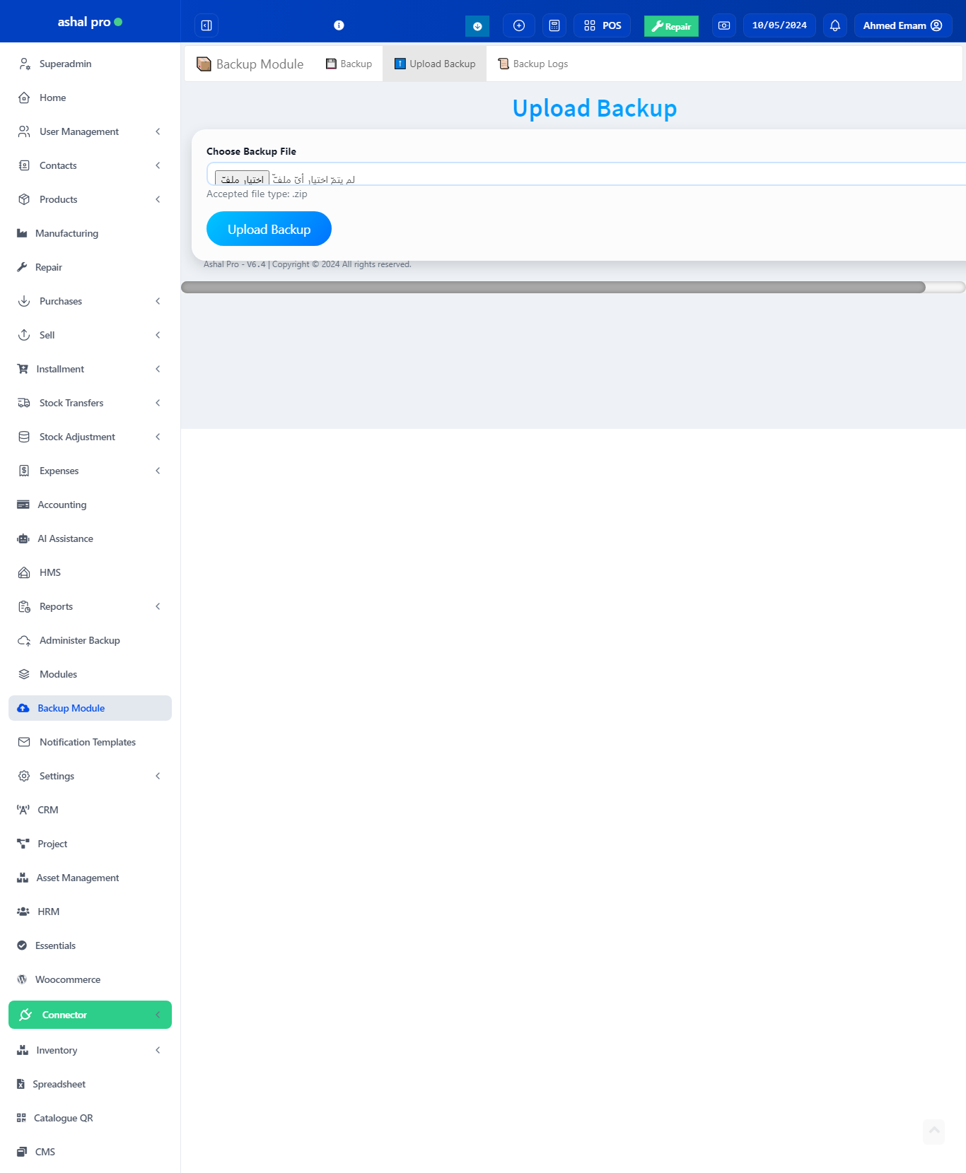2. Upload to Your Admin Panel: Navigate to /manage-modules in your UltimatePOS control panel and upload the Backupadv module.