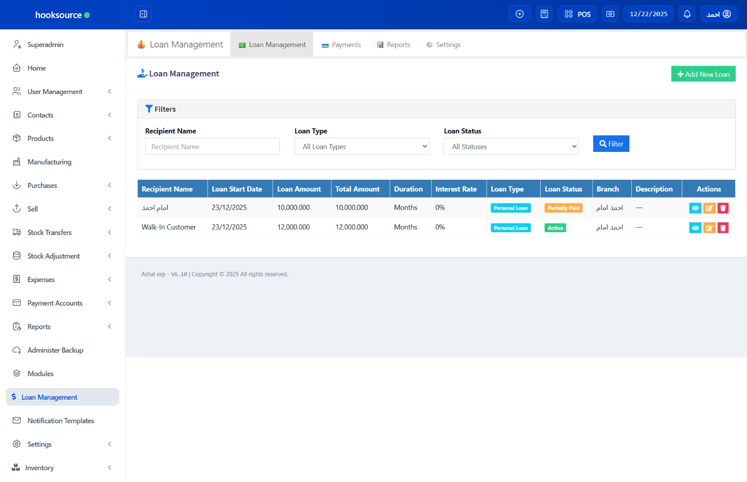– New Feature: Added support for granting loans to employees/users in addition to customers, allowing greater flexibility in loan management.