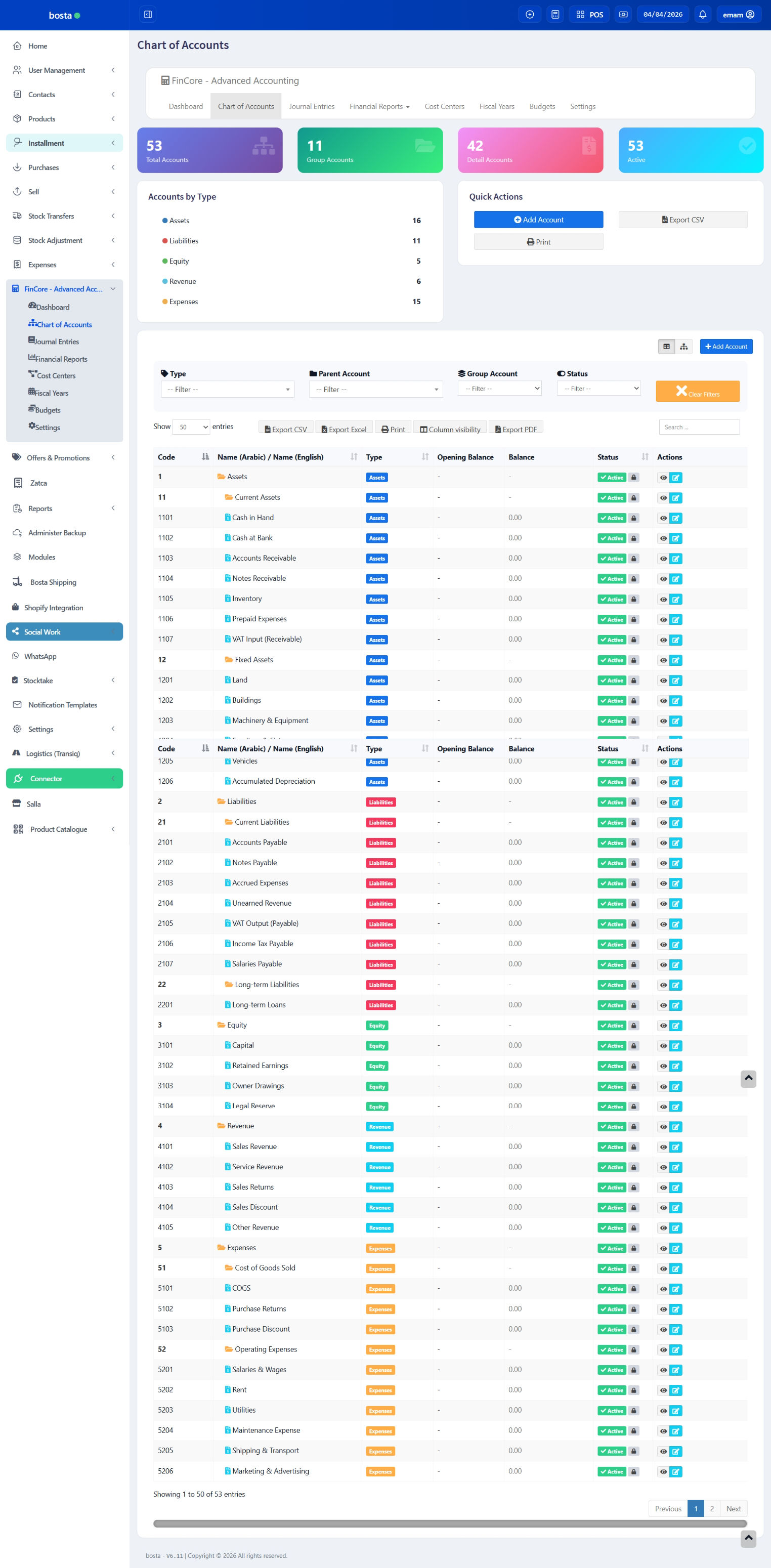 The ultimate double-entry accounting engine for UltimatePOS. Featuring an unlimited multi-level Chart of Accounts, manual and automated Journal Entries, Cost Centers, Budgeting, Fiscal Year closures, and comprehensive Financial Reports (Trial Balance, P&L, Balance Sheet). Transform your POS into a fully compliant ERP.